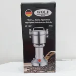 آسیاب حرفه ای ولف مدل 1367، 250 گرمی مناسب برای مصارف خانگی و صنعتی و آسیاب کردن انواع مواد و دانه های سخت و نرم از جمله : زردچوبه، هلیله، هسته خرما و هسته سنجد و… . بدنه این دستگاه از استیل ضد زنگ می باشد. موتور این دستگاه 1200 وات قدرت دارد؛ که نشان دهنده ی قدرت بالای دستگاه می باشد و در سر راه موتور یک فیوز حرارتی قرار دارد که در صورت بالا و یا پایین رفتن ولتاژ برق از آسیب رسیدن به موتور دستگاه جلوگیری می کند. تیغه های این دستگاه به صورت ترکیبی از سه نوع تیغ کوتاه و بلند ساخته شده که باعث میشود مواد به صورت یکنواخت آسیاب شود و از هدر رفتن مواد جلوگیری میشود. اقلام همراه این دستگاه شامل: دو دست تیغ کامل یدک،فرچه جهت تمیز کردن آسیاب و ذغال یدک می باشد.