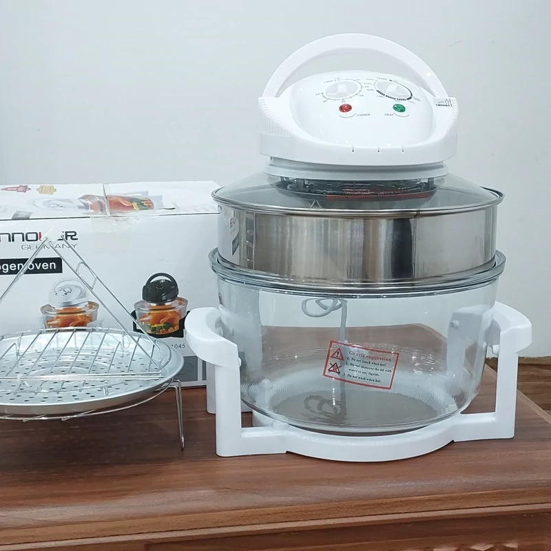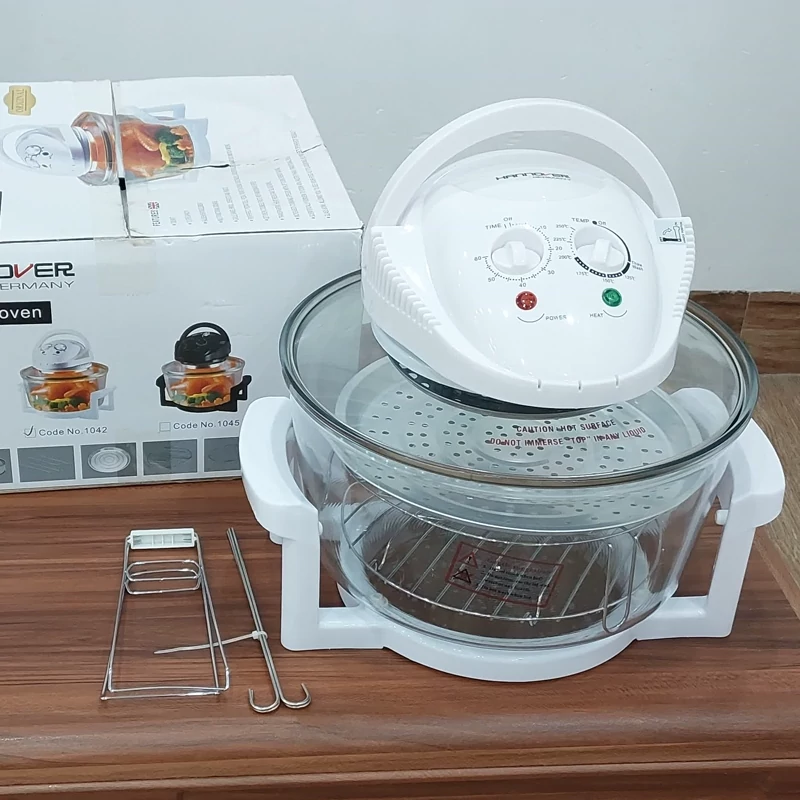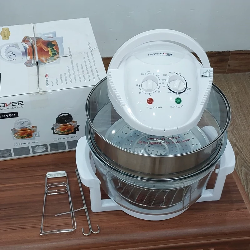 هواپز 12 لیتری هانوور آلمان با توان 1300 وات و شش نفره، تایمر تا 60 دقیقه و دمایقابل تنظیم تا 250 درجه بدون اشعه مضر انتخاب ایده آلی برای پخت غذای سالم و بدون روغن و حتی خشک کردن میوه می باشد.